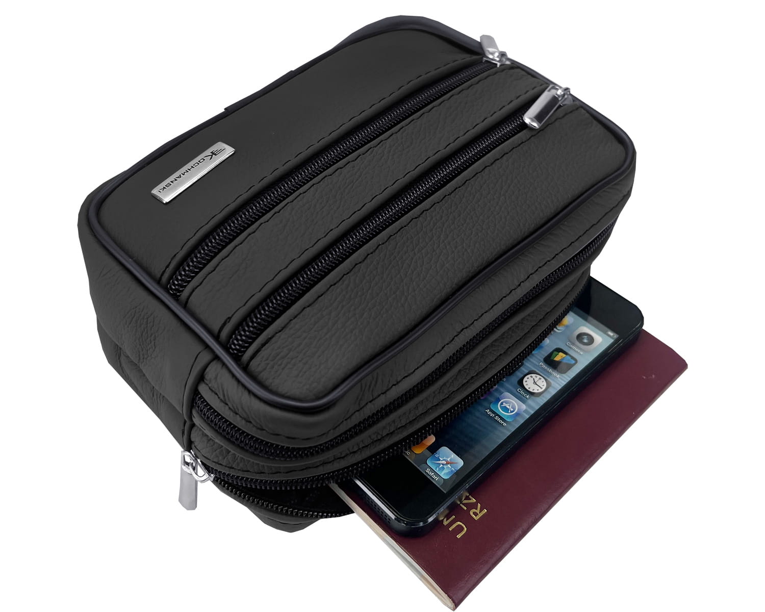 • z dwoma komorami w których zmieścisz telefon, pieniądze a także dowód rejestracyjny, paszport i inne, drobne przedmioty.
