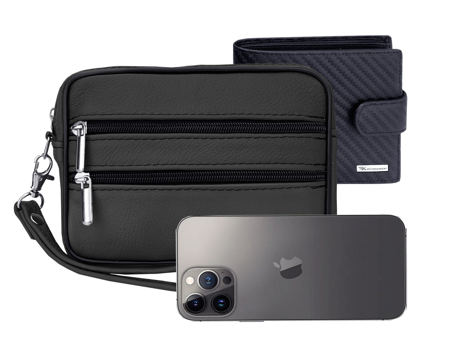 Wewnątrz zmieścisz każdy dostępny obecnie na rynku smartphone, niezależnie od wielkości. Komory saszetki do paska posiadają taki wymiar, aby zmieścił się w nich każdy model telefonu (na zdjęciu widoczny bardzo duży smartphone iPhone 13 Pro Max).